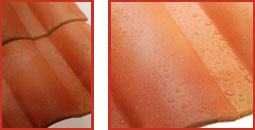 A resina penetra de 1 a 3 mm nos poros da telha, formando uma camada inorgânica e resistente à luz ultravioleta, diferente de outros materiais que formam somente uma película superficial. |